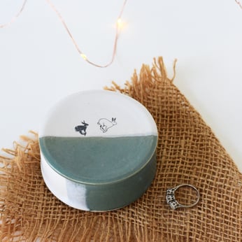 LIDDED DISH IN GREEN/CREAM- 2 sizes